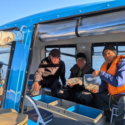 12月1日のワカサギ釣果 □大谷さんご夫妻 318匹 □西山さんファミリー 100匹 □藤井さんファ