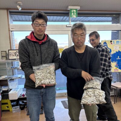 1月23日のワカサギ釣果 □小池さんと釼持さん 1447匹 □樋口さんと中山さん 450匹 □和田さ