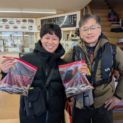 1月13日のワカサギ釣果 □横山さん親子 1955匹 □水野さんご夫妻 1000匹 □中村さん(フィ