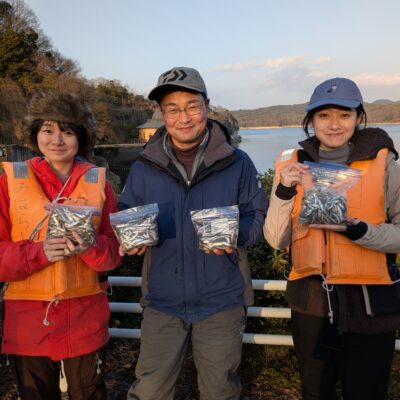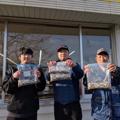 1月15日のワカサギ釣果 □結菜さんと愉快な仲間達 1300匹 □和田さん 350匹 □安達さんとお