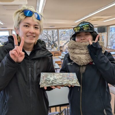 1月3日のワカサギ釣果 □森田さんと伊海さん 160匹 □有田さんファミリー 103匹 □林さんと滝