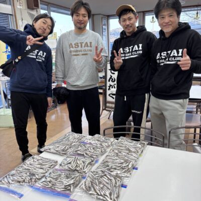 1月15日のワカサギ釣果 □結菜さんと愉快な仲間達 1300匹 □和田さん 350匹 □安達さんとお