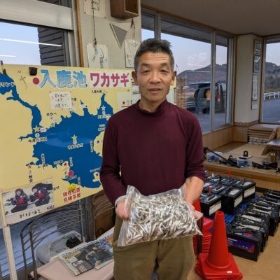 1月12日のワカサギ釣果 □林さん 1400匹 □池田さんグループ 1001匹 □早川さんファミリー