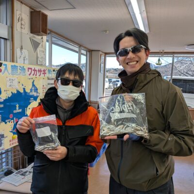 12月18日の釣果 〈ワカサギ〉 □大里さんファミリー 60匹 □竹内さん 40匹 □樋口さん 35
