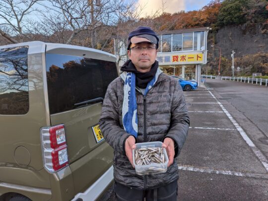 11月30日のワカサギ釣果 □奏汰くん 74匹 □近藤さん 150匹 □田中さんご夫妻 40匹 □小