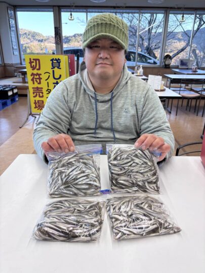 〈2月1日のワカサギ釣果〉 □『チーム早矢仕』の皆さん 1585匹 □山内さん親子 300匹 □伊藤
