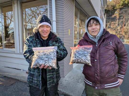 〈2月9日のワカサギ釣果〉 □鶴見さんご夫妻 185匹 □都築さんご夫妻 126匹 □好雅くんと裕雅