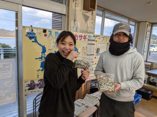 1月28日のワカサギ釣果 □井畑さんと杉本さん 150匹 □清水さん 700匹 □中村さん 550匹