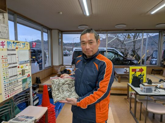 1月3日のワカサギ釣果 □森田さんと伊海さん 160匹 □有田さんファミリー 103匹 □林さんと滝