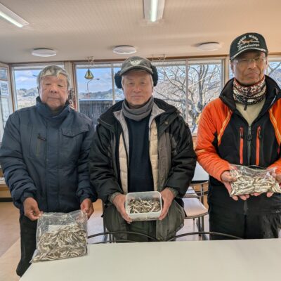 〈2月7日のワカサギ釣果〉 □後藤さん 1122匹 □那須さん 1030匹 □浅井さん 966匹