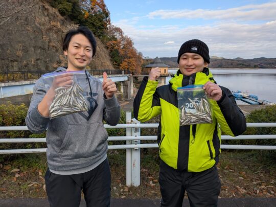 12月11日の釣果 〈ワカサギ〉 □坪井さんと桑原さん 290匹 □鈴木さん 320匹 □河津さん