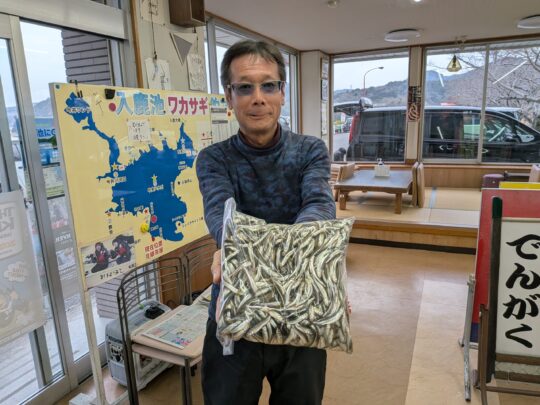 〈2月4日のワカサギ釣果〉 □森永さん 365匹 □大野さん・杉岡さん・稲見さん 600匹 □佐野さ