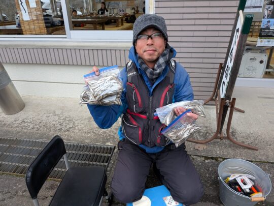 12月18日の釣果 〈ワカサギ〉 □大里さんファミリー 60匹 □竹内さん 40匹 □樋口さん 35