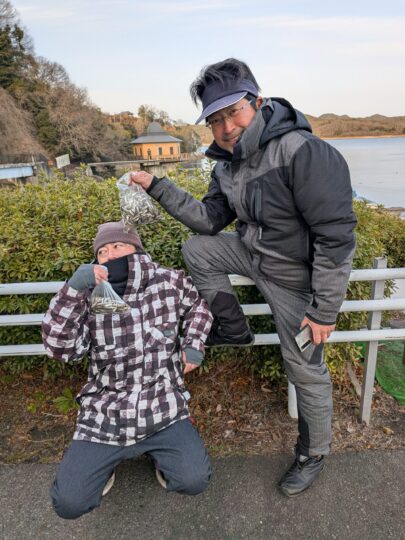 〈2月11日のワカサギ釣果〉 □タッチャンと岩さんご夫妻 1500匹 □安西さんと江口さん 152匹
