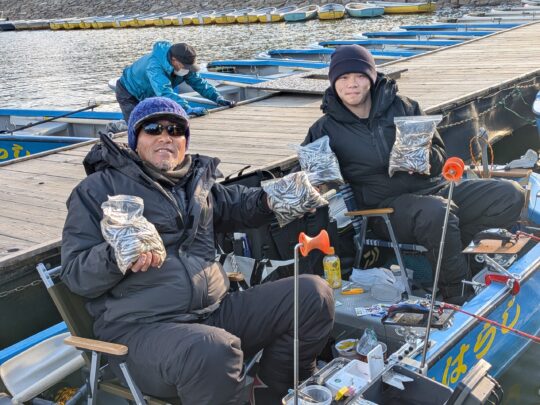 1月6日のワカサギ釣果 □三輪さんと中村さん 95匹 □川島さんとお仲間 259匹 □横田さんファミ