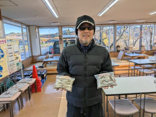 11月23日のワカサギ釣果。 □濱谷さんファミリー 89匹 □加藤さんと榎本さん 900匹 □ラム