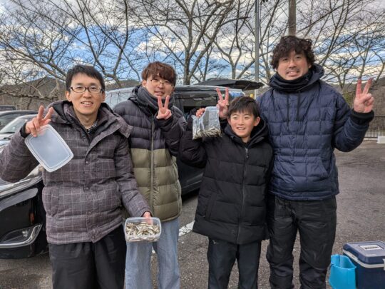 12月18日の釣果 〈ワカサギ〉 □大里さんファミリー 60匹 □竹内さん 40匹 □樋口さん 35