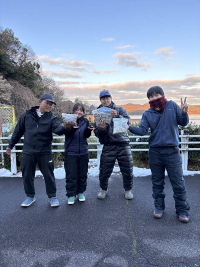 1月4日のワカサギ釣果 □長坂さんファミリー 170匹 □本田さんとお仲間 200匹 □浦本さん 5