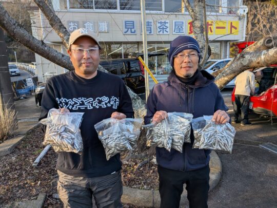 1月7日のワカサギ釣果 □松森さん 1101匹 □鈴木さん 630匹 □新藤さん 250匹 □戸田さ