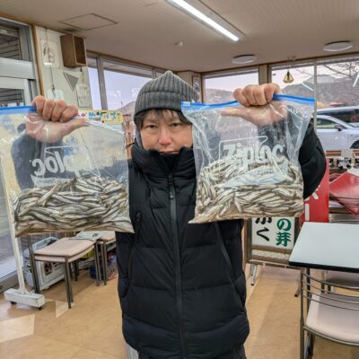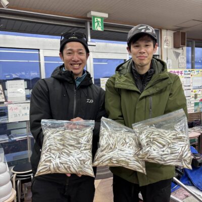 1月3日のワカサギ釣果 □森田さんと伊海さん 160匹 □有田さんファミリー 103匹 □林さんと滝