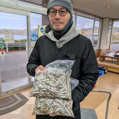 1月4日のワカサギ釣果 □長坂さんファミリー 170匹 □本田さんとお仲間 200匹 □浦本さん 5