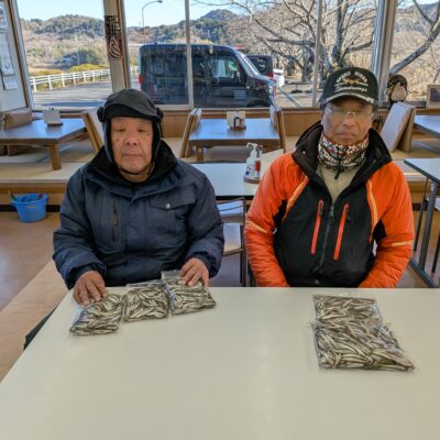 1月4日のワカサギ釣果 □長坂さんファミリー 170匹 □本田さんとお仲間 200匹 □浦本さん 5