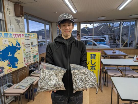 1月28日のワカサギ釣果 □井畑さんと杉本さん 150匹 □清水さん 700匹 □中村さん 550匹