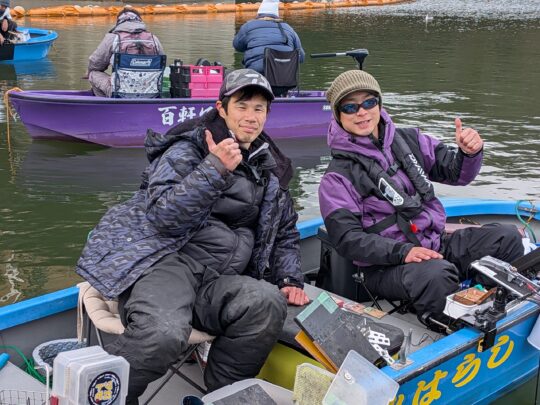 1月23日のワカサギ釣果 □小池さんと釼持さん 1447匹 □樋口さんと中山さん 450匹 □和田さ