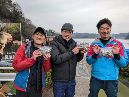 1月5日の釣果 〈ブラックバス〉 □余吾さん 45cm 〈ワカサギ〉 □西尾さん兄弟 2124匹 □