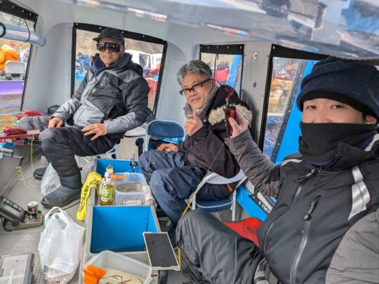 〈1月30日のワカサギ釣果〉 □冨田さん 1212匹 □宮本さんと愉快な仲間達 980匹 □近藤さん