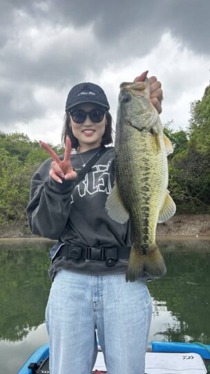 〈4月10日の釣果〉 桒野さん 44〜35cm(4匹) #入鹿池 #見晴茶屋 #ブラックバス釣り