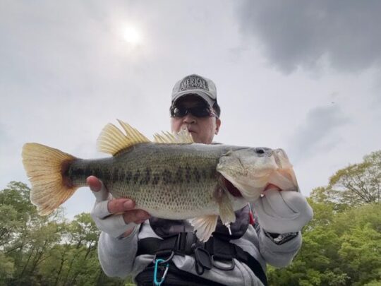 〈4月10日の釣果〉 桒野さん 44〜35cm(4匹) #入鹿池 #見晴茶屋 #ブラックバス釣り